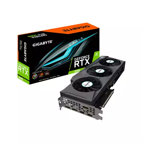 Based on the Ampere architecture and designed to handle the graphical demands of 4K gaming and high frame rates, the Gigabyte GeForce RTX 3080 EAGLE OC 10G Graphics Card brings the power of real-time ray tracing and AI to your PC games. The Ampere architecture features 2nd Gen RT Cores and 3rd Gen Tensor Cores. The GPU features 10GB of GDDR6X VRAM and a 320-bit memory interface, offering improved performance and power efficiency over the previous Turing-based generation.