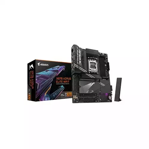 The Gigabyte X870 Aorus Elite Wifi7 DDR5 AM5 ATX Motherboard is a high-performance motherboard designed to support AMD Ryzen 9000, 8000, and 7000 Series Processors. Built on the latest AMD X870 chipset, this motherboard is optimized for advanced gaming and productivity, offering DDR5 memory support, enhanced onboard graphics, and cutting-edge wireless connectivity with Wi-Fi 7. It is an excellent choice for gamers, content creators, and PC enthusiasts looking for top-tier performance, superior connectivity, and future-proofing for their setups.
