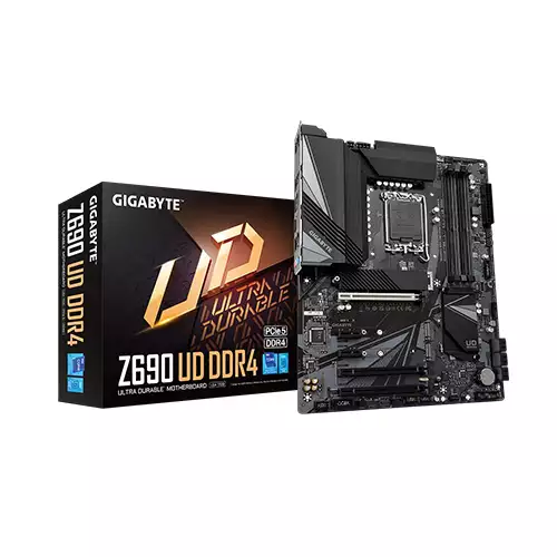 The Gigabyte Z690 UD DDR4 Motherboard will serve as the foundation for your high-performance processor-based gaming PC with Gigabyte-exclusive features like Smart Fan 6. GIGABYTE Z690 DDR4 UD Motherboard supports 12th generation Intel Core processors. The 12th generation Intel Core processors are a small revolution in x86 architectures, as they are the first to integrate a hybrid architecture. This process consists of combining two different types of cores on the same chip. The first 1, called Performance-Cores, is dedicated to performance in games and mono-threaded applications requiring resources. The second type, called Efficient-Cores, is particularly efficient for multitasking and side task processing. Together, the two provide spectacular performance and incredible responsiveness for your system. the GIGABYTE Z690 UD DDR4 Motherboard. With technology moving so fast, GIGABYTE still keeps up with the latest trends and provides our customers with advanced features and the latest technology. GIGABYTE Z690 Series motherboards come with upgraded power solution, latest storage standards, and outstanding connectivity to enable optimized performance for gaming.Z690 UD DDR4 uses high performance Covered thermal design with high coverage MOSFET Heatsinks and thick thermal pad, providing ultimate MOSFET cooling performance for enthusiasts, overclockers and gamers.