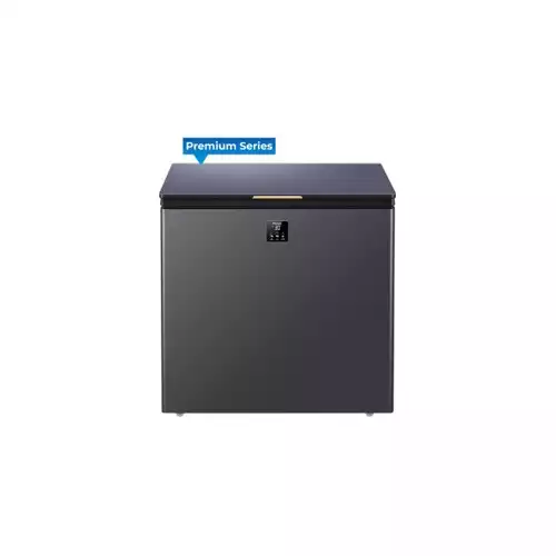 The Haier HCF-175GE 142L Chest Freezer, available at TechLand BD, is a practical and stylish appliance designed to meet your freezing needs with efficiency and convenience. This chest freezer boasts a total gross capacity of 142 liters, making it an ideal choice for small to medium-sized households looking to store a variety of frozen foods. The freezer features a premium glass door finish in a sophisticated ash blue color, adding a touch of elegance to any space. Constructed with durable PCM steel, the Haier HCF-175GE is built to last and withstand daily use. The recessed handle design not only enhances its sleek appearance but also makes it easy to open and close.One of the standout features of this model is its electronic control system with a digital display, allowing you to easily monitor and adjust the temperature to suit your needs. Although it does not have an internal light, the balanced hinge ensures smooth and stable opening and closing, providing easy access to your stored items.The Haier HCF-175GE operates efficiently within a voltage range of 160V to 275V, making it reliable even in areas with unstable power supplies. The fixed compressor type and eco-friendly R600a refrigerant ensure optimal cooling performance while being kind to the environment. The climate class T rating indicates that it is designed to operate effectively in a wide range of ambient temperatures.For added convenience, the freezer includes a power-on light and a temperature alarm to alert you if the internal temperature rises unexpectedly. This feature is particularly useful in maintaining the integrity of your frozen goods. The convertible dual function allows you to switch between refrigerator and freezer modes, offering flexibility depending on your storage requirements.Despite its robust capabilities, the Haier HCF-175GE is lightweight, with a net weight of 30 kg and a gross weight of 35 kg, making it easy to move and install. The addition of wheels further enhances its mobility, allowing you to reposition it effortlessly. The freezer also includes one basket to help organize your items efficiently.The Haier HCF-175GE is backed by a comprehensive warranty, providing 10 years of coverage for the compressor and 2 years for parts and service, ensuring peace of mind and reliable support. This chest freezer is a versatile and efficient solution for all your freezing and refrigeration needs, available now at TechLand BD.