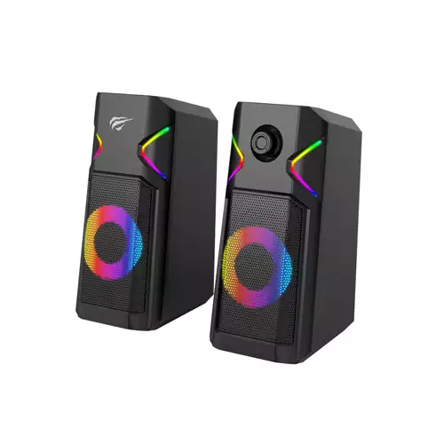 Havit Sk201 Stereo Electronic Sports Speaker come with 2.0 electronic sports speakers, designed for gamers, Dynamic RGB lights, more cool to play games. Elevation angle design makes sound propagation direction closer to the position of ear. 3.5MM stereo audio input. Long wire control, practical and easy to operate.