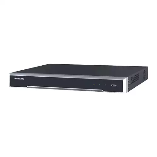 Record from and manage up to 16 cameras with the DS-7616NI-Q2/16P 16-Channel 4K UHD NVR (No HDD) from Hikvision. The recorder can host two HDDs up to 8TB each for a maximum internal capacity of 16TB (available separately). H.265, H.265+, H.264, and H.264+ compressions keep file sizes manageable while maintaining the best quality possible. Two-way audio communication is supported.Hikvision DS-7616NI-Q2 is a 16-channel 4K reliable and professional NVR and H.265 + compression significantly reduces storage capacity by up to 75%. This NVR has an HD video output and can simultaneously output HDMI and VGA, as well as HDMI video output up to 4K quality. Two SATA ports are included in the Hikvision NVR for HDD connection with a capacity of up to 8 TB each.
