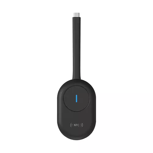 Hikvision DS-D5SC3B-B Quick Screen Mirroring Wireless Dongle is a versatile and high-performance device designed for seamless screen sharing and wireless presentations. Supporting 1080P and 4K resolution, this dongle ensures crisp, clear visuals for both business meetings and educational environments. It comes with 512MB of built-in memory and 4GB of storage, allowing smooth operation and fast processing for various devices. The built-in Gigabit NIC supports both 2.4G and 5G networks, delivering reliable and stable wireless connectivity. Equipped with a Type-C power interface, the DS-D5SC3B-B can automatically switch charging direction, providing up to 60W fast charging for laptops via an adapter and 5V/500mA charging for mobile devices when connected. Despite its compact size, it operates efficiently with a low power consumption of 2.8W and a rated power of 5V/900mA. The dongle supports IEEE 802.11 a/g/n/ac wireless protocols and AES encryption, ensuring secure and fast transmission. Its frame rate of 30fps and transmission delay under 350ms provide smooth and lag-free screen mirroring. This wireless dongle also supports ISO/IEC 14443-A NFC protocol and advanced audio/video parameters, including a 48kHz audio sampling rate, 16-bit depth, ACC dual-channel encoding, and 10-bit H.264 video encoding, ensuring high-quality multimedia performance. Compact yet sturdy, the device measures 189 × 58 × 17 mm and weighs only 90g, making it easy to transport and set up. The package includes the dongle, a USB Type-A/Type-C adapter, and a manual, providing everything needed for quick installation. Ideal for classrooms, offices, and conference rooms, the Hikvision DS-D5SC3B-B delivers efficient, reliable, and secure wireless screen mirroring with minimal setup.