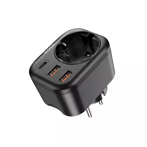 Hoco NS3 Multifunctional Socket is a compact yet powerful charging and power solution designed for modern households, offices, and travel needs. Built with flame-retardant PC material, it ensures safety and durability, making it reliable for daily use. The socket features one high-power AC outlet (4000W capacity) that supports German/French/European standard plugs, allowing you to connect and power high-wattage devices with ease. For your mobile devices, the Hoco NS3 is equipped with one Type-C PD 20W port and two USB-A fast charging ports, delivering efficient charging performance. The Type-C port supports PD20W, QC3.0/2.0, AFC, and FCP protocols, while the USB-A ports provide up to 18W output. Together, they can deliver a combined 5V/3A total output, making it suitable for smartphones, tablets, and other gadgets. With a compact size (70×51×79mm) and lightweight build (94g), the Hoco NS3 is highly portable and convenient for travel, ensuring you always have safe power access and fast charging on the go. Whether at home, office, or while traveling, this multifunctional socket is a smart addition to your everyday essentials.