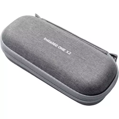 The Insta360 ONE X2 Carry Case is a compact fabric case with a zippered enclosure. It fits the ONE X2 camera in a dedicated slot and also features another slot and a zippered interior pocket for accessories.