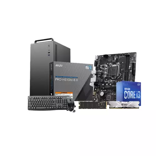 This desktop is powered by the Intel Core i3-10100 10th Gen processor, a 4-core 8-thread CPU that delivers responsive performance for general computing tasks. It is paired with the MSI PRO H510M-B II motherboard, which provides excellent stability and supports both 10th and 11th Gen Intel CPUs. The system includes 8GB of AITC KINGSMAN DDR4 RAM, running at 3200MHz, ensuring smooth multitasking and fast response times. Storage is handled by a 256GB LEXAR NM620 M.2 NVMe SSD, offering lightning-fast data access and significantly reduced boot times. The desktop is housed in a VALUE-TOP V200H Micro ATX Mini Tower casing, which includes a built-in power supply unit, contributing to a clean and efficient build. For added convenience, the package includes a Logitech K120 keyboard and an 8100 optical mouse combo, giving you everything you need to start working right away.