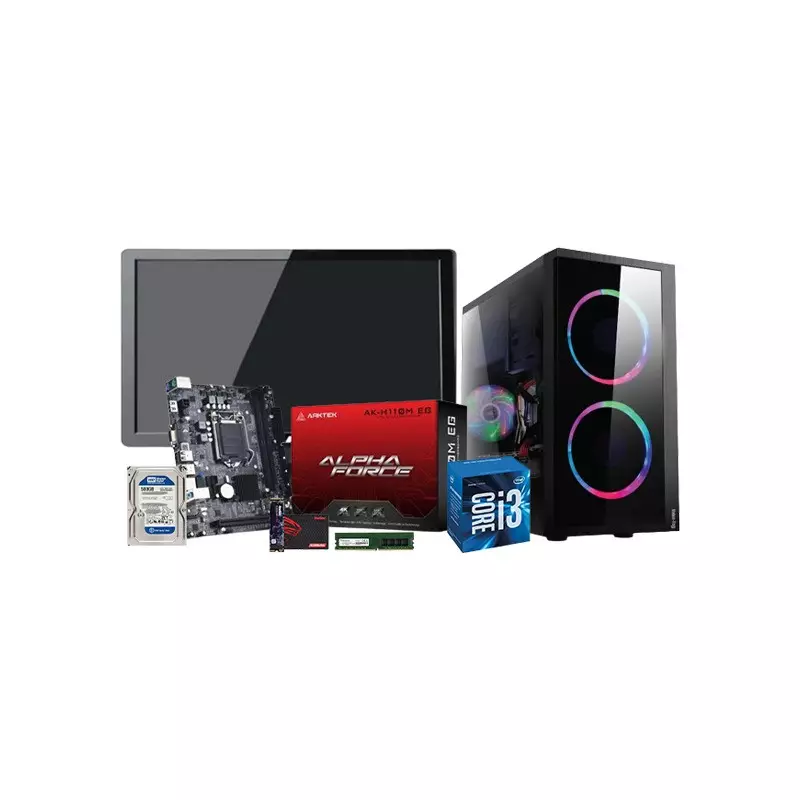 The Intel Core i3 H110M Motherboard 8GB RAM 256GB SSD Corporate PC with Wide Monitor, complete with a powerful desktop unit and a widescreen monitor for an immersive computing experience in your office environment. Powered by an Intel Core i3 6th Gen processor, our Corporate PC is engineered to handle everyday tasks with ease, ensuring efficient performance and seamless multitasking capabilities. Paired with an H110m motherboard, expect stable connectivity and reliable operation for all your business needs. With 8GB of Adata DDR3 2666MHz RAM, this PC delivers swift responsiveness and smooth execution of applications, allowing you to maximize productivity throughout your workday. The inclusion of a Kingspec 256GB M.2 NVMe SSD ensures lightning-fast boot-up times and rapid data access, while the mixed 500GB SATA HDD offers ample storage space for your files and documents. Housed within the sleek Value-Top Vt-R858 Micro ATX desktop casing, this PC not only offers a compact and professional appearance but also ensures efficient heat dissipation and stable power delivery with its 200W PSU. But the package doesn't end there. We've included the Starex 19-inch LED widescreen monitor to complement your desktop setup. With its wide display and vibrant visuals, this monitor provides an immersive viewing experience, perfect for presentations, data analysis, and multimedia tasks. Upgrade your office environment with our Corporate PC package, combining powerful performance with high-quality display technology for enhanced productivity and efficiency. Experience seamless workflow and superior computing with this comprehensive desktop