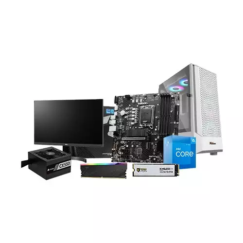 The Intel Core i5-12400 Desktop PC price in BD is just the cherry on top, offering exceptional value for its unmatched performance and features. Engineered for seamless multitasking and high-performance computing, this desktop PC is meticulously crafted to elevate your workflow and entertainment to new heights. At its core lies the Intel Core i5-12400 processor, a 6-core, 12-thread beast from the 12th generation Intel lineup. With its impressive processing prowess, it effortlessly handles demanding tasks, whether you're crunching numbers, editing videos, or gaming with friends. Complementing the processor is the MSI PRO B760M-P motherboard, meticulously designed to harness the full potential of the CPU. Featuring DDR5 memory support and tailored for both 13th and 12th generation processors, this motherboard ensures smooth and reliable performance under any workload. Equipped with 16GB of GIGABYTE AORUS RGB DDR5 RAM clocked at a blazing 6000MHz, this desktop PC offers lightning-fast responsiveness and seamless multitasking capabilities. Experience fluid transitions between applications and enjoy smooth gameplay without any compromises. Storage is never an issue with the AITC KINGSMAN KM600 ULTRA 1TB M.2 NVME PCIe SSD. Boasting lightning-fast read and write speeds, your operating system, applications, and files load in an instant, ensuring you're always ready to tackle any task head-on. Powering this performance-driven machine is the Corsair CX550 550 Watt 80 PLUS Bronze ATX Power Supply, delivering reliable and efficient power to all components, ensuring stable operation even during intense workloads or gaming sessions. Encased in the sleek and stylish PC POWER PG-500 AIR LOCK MESH ARGB 4F ATX Gaming Casing in dazzling white, this desktop PC not only performs like a beast but also looks the part. With its ample airflow and vibrant ARGB lighting, it adds a touch of sophistication to your setup. Completing the package is the LG 22MK600M 22-inch IPS Borderless Full HD Monitor, offering crisp visuals and immersive colors for an unparalleled viewing experience. Whether you're a content creator, professional, or avid gamer, the Intel Core i5-12400 SI PRO B760M-P Desktop PC is your ultimate companion for conquering tasks and unlocking new possibilities in the digital realm. Elevate your computing experience today and unleash your creativity with this powerhouse desktop PC.Buy the Intel Core i5-12400 MSI PRO B760M-P Motherboard 16GB RAM 1TB SSD Desktop PC with 22-inch Monitor from Tech Land BD now.