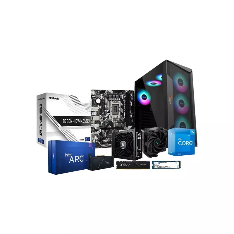 The Intel Core i5-12400F ASROCK B760M Motherboard 16GB RAM 1TB SSD Gaming PC, a powerhouse engineered for uncompromised gaming performance, is now exclusively available at TechLand BD, delivering an unparalleled gaming experience to enthusiasts in Bangladesh. At its core lies the Intel Core i5-12400F, a 6-core, 12-thread processor from the 12th Gen Intel Core lineup, clocking in at an impressive speed, providing seamless multitasking and swift processing power. The ASROCK B760M-HDV/M.2 DDR4 Micro ATX Motherboard, tailored for 12th and 13th Gen processors, serves as a robust foundation, ensuring stability and compatibility. The gaming prowess of this system is further enhanced by the Intel ARC A750 Limited Edition 8GB GDDR6 Graphics Card, delivering stunning visuals and smooth gameplay. To maintain optimal temperatures, the DEEPCOOL AK400 Zero Dark Plus CPU Cooler efficiently dissipates heat during intense gaming sessions. With 16GB of Kingston Fury Beast 3200MHz DDR4 Desktop RAM, this system ensures responsive multitasking and swift data access. Storage is elevated with the high-speed Kingston NV2 1TB PCIe 4.0 NVMe SSD, providing ample space for games and applications with rapid data transfer rates. The 1STPLAYER DK5.0 PS-500DK 500W 80 PLUS Bronze Certified Full Modular Power Supply ensures reliable and efficient power delivery. Housed within the striking PC POWER VOX MESH PG200 ARGB ATX Gaming Case in black, this gaming PC not only offers top-tier performance but also showcases a visually stunning and customizable aesthetic. Upgrade your gaming setup with this high-performance PC, now available at TechLand BD, your ultimate destination for cutting-edge gaming hardware and accessories in Bangladesh.