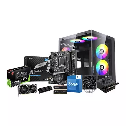 Intel Core i5 13th Gen MSI PRO B760M-E Gaming PC is equipped with a powerful Intel Core i5-13400 13th Gen Raptor Lake processor, ensuring optimal performance for intensive tasks. Its MSI PRO B760M-E DDR4 motherboard supports the latest hardware configurations. The system features dual Kingston Fury 8GB 3200MHz DDR4 RGB RAM modules, providing a total of 16GB of memory for smooth multitasking. A Corsair MP600 ELITE 1TB PCIe Gen4 x4 NVMe SSD ensures blazing-fast data transfer speeds and quick application load times. The graphics performance is handled by the ZOTAC GEFORCE RTX 3060 TWIN EDGE 12GB GDDR6 GRAPHICS CARD, which is perfect for gaming at high settings and content creation. Additionally, the 1STPLAYER PS130 ARGB Hydro Bearing CPU Air Cooler ensures efficient cooling, while the GAMDIAS HELIOS M1-550B 550W 80 PLUS Bronze Power Supply ensures stable power delivery. The system is housed in a stylish Maxcool Inferno MC5 Micro ATX gaming case, offering both aesthetics and functionality.