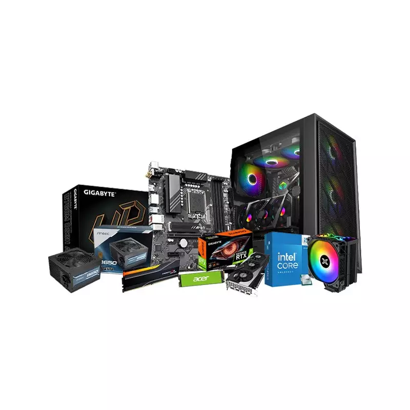 The Intel Core i5 14400F Gigabyte B760M DS3H AX Motherboard 16GB RAM 500GB SSD Desktop PC with Graphics featuring top-of-the-line components for unrivaled performance and immersive gaming experiences. Equipped with the Intel Core i5 14400F 14th Gen Raptor Lake Processor and paired with the GIGABYTE B760M DS3H AX LGA1700 13TH GEN DDR5 WIFI MOTHERBOARD, this PC ensures blazing-fast speeds and seamless multitasking. Dive into the world of high-fidelity gaming with the Gigabyte GeForce RTX 3060 Gaming OC 12GB Graphics Card, delivering stunning visuals and smooth gameplay. Keeping temperatures in check is the XIGMATEK AIR KILLER PRO CPU COOLER, guaranteeing optimal performance even during intense gaming sessions. With a whopping 16GB of G.SKILL TRIDENT Z5 NEO RGB DDR5 5600MHZ DESKTOP RAM, multitasking becomes effortless, while the Acer FA200 500GB M.2 2280 PCIe Gen 4 NVMe 2.0 SSD provides lightning-fast storage speeds. The ANTEC ATOM B650 80 PLUS BRONZE 650W POWER SUPPLY ensures stable and reliable power delivery to all components. Housed in the stunning 1STPLAYER AR-7G Mesh AR series ATX Gaming Case with 6 ARGB Fans, this PC not only performs exceptionally but also looks the part with its mesmerizing RGB lighting. Elevate your gaming and computing experience to new heights with this powerhouse desktop PC configuration. Available now for enthusiasts and gamers alike.Secure your Intel Core i5 14400F Gigabyte B760M DS3H AX Motherboard 16GB RAM 500GB SSD Desktop PC with Graphic from Tech Land BD today.