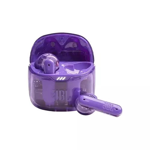 The JBL Tune Flex Ghost In-Ear Bluetooth Earbuds in an eye-catching Purple Ghost color combine style, performance, and advanced technology. These lightweight earbuds are designed for everyday use, offering excellent sound quality, effective noise cancellation, and up to 32 hours of battery life, making them an ideal companion for music lovers and multitaskers.