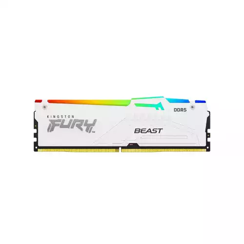 The Kingston FURY Beast 32GB DDR5 6000MHz CL30 RGB Desktop RAM is engineered to deliver exceptional speed, performance, and reliability for high-end gaming and productivity systems. Designed for next-generation platforms, this DDR5 memory module takes your PC's performance to new heights with an ultra-fast 6000MHz bus speed and low CL30 latency, ensuring smoother multitasking, faster load times, and superior responsiveness across demanding applications. With 32GB of capacity, it provides ample memory for gaming, streaming, 3D rendering, and other intensive workloads. The Kingston FURY Beast DDR5 module operates at 1.25V, 1.35V, and 1.4V, efficiently balancing power consumption and performance. Its sleek white design complements modern gaming rigs and RGB builds. At the same time, the enhanced RGB lighting adds a dynamic aesthetic touch, customizable via Kingston's proprietary software and major motherboard lighting control platforms. Built with high-quality components and advanced heat dissipation technology, it ensures stable and reliable performance even during long gaming sessions or overclocking. Measuring 133.35 mm × 42.23 mm × 7.11 mm, the module maintains a compact profile that easily fits most desktop configurations. As part of Kingston's renowned FURY lineup, this RAM is optimized for the latest Intel and AMD DDR5 platforms, offering automatic Plug N Play overclocking for a seamless setup experience. Whether you're building a new PC or upgrading your current one, the Kingston FURY Beast DDR5 RAM guarantees blazing speed, consistent reliability, and an eye-catching design—all backed by a lifetime warranty for long-term peace of mind.