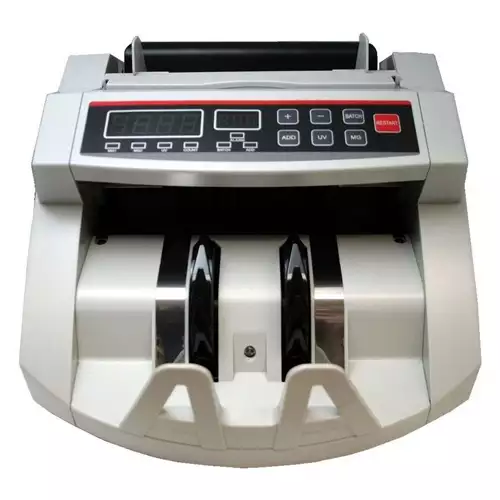 Electronic money counter 2108 UV/MG intelligent counterfeit detection machine auto star / stop / clearing system, withbatching, fake notes detection, adding and self examination function, size of countable note 50mm x 110mm to 90mm x 180mm, counting speed 1000pcs/min, AC 230V 50Hz power supply, AC 120V 60Hz, 70 watt power consumption, 305mm x 265mm x 185mm dimensions, 38.5 x 23 x 30cm inner box size, 61 x 40.5 x 26cm outer carton size.