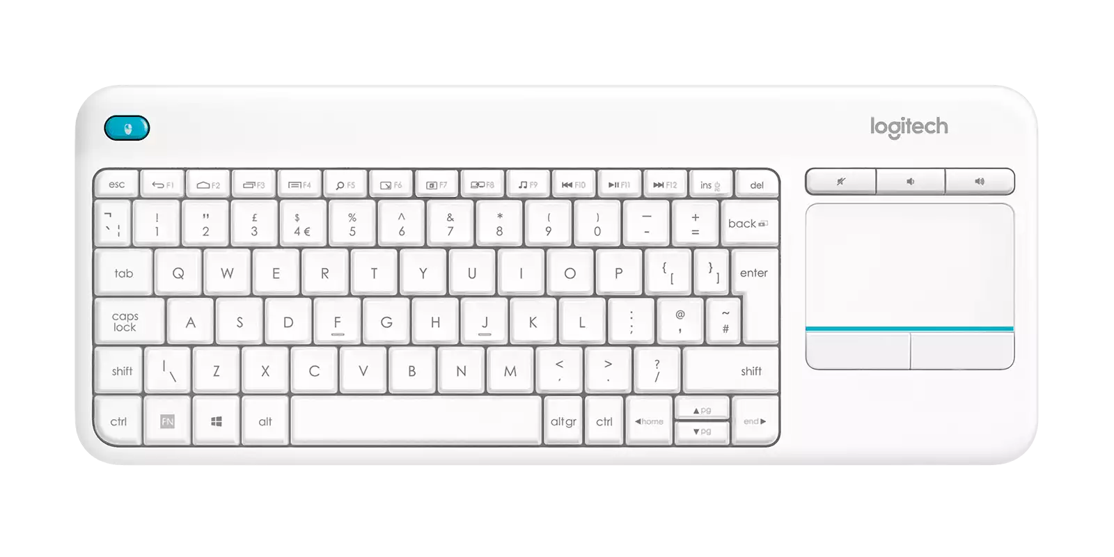 THE INBUILT TOUCHPAD KEEPS YOUR WRITING AND NAVIGATION TIRED ONE PLACE. ONCE IT INVOLVES YOUR PC-CONTROLLED TV, K400 MAKES NAVIGATION EASIER WITH NO GOT TO CONNECT THE KEYBOARD AND MOUSE ONE BY ONE (OR GET OFF THE COUCH). THUS YOU'LL SEAMLESSLY WATCH VIDEOS, BROWSE THE ONLINE, OR CHAT WITH FRIENDS.
