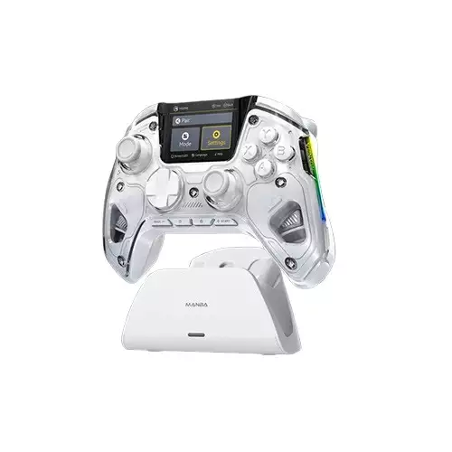Manba One V2 Wireless PC Controller, available in Bangladesh through retailers like Tech Land BD, is a feature-rich gaming accessory designed for versatility and precision across multiple platforms, including Nintendo Switch, iOS, Android, Steam Deck, and Windows PC. Its standout feature is a 2-inch LED Smart Interactive Screen, allowing on-the-fly customization of vibration, buttons, joysticks, and RGB lighting without needing external apps or software, offering a seamless and intuitive user experience. The controller supports 2.4GHz two interchangeable joystick sizes (high and low) for ergonomic customization, and replaceable magnetic faceplates for a personalized aesthetic. The three-level adjustable vibration motor provides immersive feedback, though some users note it lacks the precision of dual-motor systems in premium controllers. Available in white with customizable RGB light strips, its ergonomic design (295g) reduces fatigue, though some users report minor issues with back button placement and faceplate grip, suggesting optional stick-on grips for improved handling. Backed by a 1-year warranty and praised for responsive customer service, the Manba One V2, priced around $65.90–$69.90, offers premium features at a budget-friendly price, competing with high-end controllers like the DualSense Edge. Visit Tech Land BD or authorized retailers to purchase this controller and elevate your gaming with precision, style, and innovation.