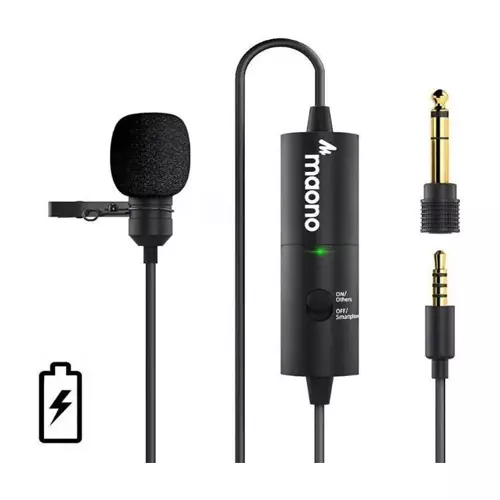 MAONO AU100R lavalier microphone has a built-in rechargeable battery to make it available for over 90 hours working time which is suitable for outside use, don't worry about being out of power. The micro USB charging cable and carrying bag are included in the package