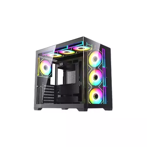 Maxcool PANDA MC7 ATX Gaming Case is a premium Black gaming chassis designed for high-performance setups with an aesthetic edge. It features 7 pre-installed 120mm ARGB fans, including 3 reverse blade fans, ensuring optimal cooling and enhanced airflow. With a full glass front and left side panel, this case showcases your gaming components while maintaining a sleek, modern look. It supports ATX, Micro ATX, and Mini ATX motherboards, offering flexibility for various builds. The front I/O panel is equipped with USB 3.0, USB 1.0, and HD Audio ports for seamless connectivity. The 1600 RPM fan speed ensures efficient cooling, making it ideal for gamers and PC enthusiasts looking for both style and performance. Whether you're building a high-end gaming rig or a powerful workstation, the Maxcool PANDA MC7 provides superior airflow, durability, and aesthetics. Get it now at Tech Land BD for the best price!