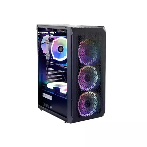 ATX, M-ATX, and ITX motherboards are all compatible with the MaxGreen 801 (300) Mid-Tower RGB Gaming Case. Tempered glass, polycarbonate, and a 0.45mm steel construction make up its exterior. One USB3.0 port and one USB1.1 port are available on it. Additionally, an HD Audio Port is present. The case's left side panel, which is secured by four screws, is made of tempered glass, while the front panel is plastic and mesh. It comes with a 4x RGB Fan that is already installed. On the left side, there is a panel that is partially transparent. Three 120mm front fan supports, two 120mm top fan supports, one 120mm rear fan support, and two 120mm rear radiator supports are all present in this shell. MaxGreen created a stylish enclosure.