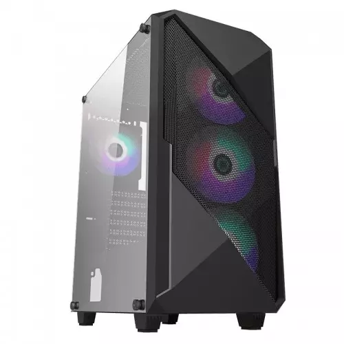 The MaxGreen A366BK is a mid tower computer case designed for ATX and Micro-ATX motherboards. It offers a range of features and specifications to accommodate various hardware configurations and provide a visually appealing setup.One notable feature of the MaxGreen A366BK casing is its stylish design. It comes in a sleek black color with a tempered glass side window, allowing users to showcase their internal components and RGB lighting setups. The 0.5mm thickness of the case ensures durability and stability.The casing supports a total of four cooling fans, with three RGB fans pre-installed in the front and one RGB fan in the rear. The RGB lighting adds a vibrant touch to the overall aesthetics of the case. The built-in fan and light controller provide convenient control over the fan speed and lighting effects.In terms of connectivity, the MaxGreen A366BK casing includes two USB Type-A ports and an audio in/out port on the front panel. However, it does not feature a memory card slot.The case does not come with a built-in power supply, allowing users to choose and install their preferred ATX power supply. The power supply is mounted at the bottom of the case, which helps with cable management and provides efficient airflow.