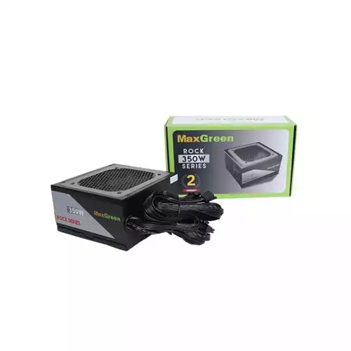 The MaxGreen Rock Series 350W power supply is a non-modular power supply that can provide a maximum power of 350 watts. It has a 120mm fan for cooling and operates at a frequency of 50Hz. The input voltage range is 100VAC - 240VAC and the input current is 5A. The power supply comes with a 2-year warranty.The main power connector is a 24-pin M/B connector, the CPU connector is an 8 (4+4) pin CPU connector, and the PCI-E connector is an 8(6+2) pin PCI-E connector.MaxGreen stands behind the quality and durability of the Rock Series 350W Power Supply with a 2-year warranty. This warranty ensures that you can count on the reliability and longevity of this power supply unit for years to come.In summary, the MaxGreen Rock Series 350W Power Supply is a dependable and efficient choice for powering your computer system. With a generous warranty, a variety of connectors, and a focus on performance and stability, it's the perfect addition to any desktop