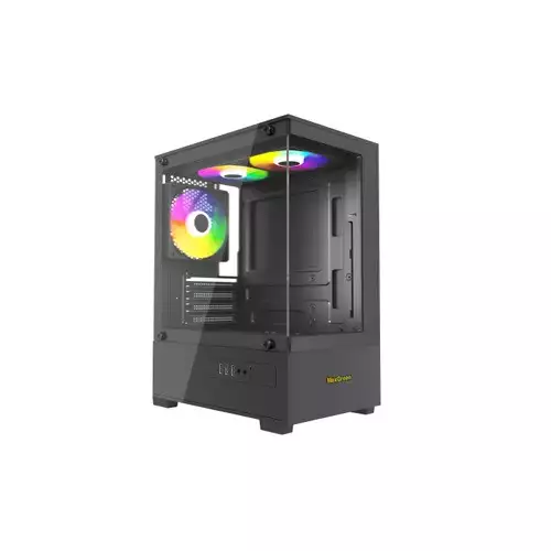 MaxGreen S19001 Mid-Tower M-ATX Gaming Case is a stylish and functional choice for gamers and PC enthusiasts seeking a sleek yet practical case. With support for M-ATX and ITX motherboards, tempered glass panels, and efficient airflow design, this case combines aesthetics with performance. Its compact size and modern features make it an excellent choice for building mid-range gaming or productivity systems.