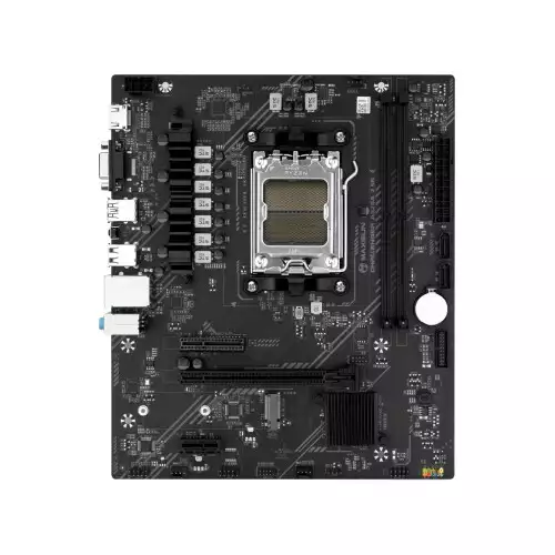 The Maxsun Challenger A620A 2.5G DDR5 AMD Motherboard is a feature-packed micro-ATX motherboard designed to deliver outstanding performance and reliable functionality for modern AMD systems. Built with the AMD A620 chipset, this motherboard supports the latest AMD AM5 socket processors, making it compatible with powerful Ryzen 7000, 8000, and 9000 series CPUs. With two DDR5 memory slots, users can expand up to 96GB of high-speed memory, ensuring blazing performance for multitasking, gaming, and productivity. The memory slots support speeds from 4800MHz and beyond with overclocking, making it ideal for users who want to get the most out of DDR5 technology. For storage, it offers a PCIe 4.0 x4 full-speed M.2 interface with NVMe protocol support, enabling ultra-fast SSD performance, alongside 2 x SATA 3.0 ports for traditional storage expansion. Expansion flexibility is enhanced with 1 x PCIe 4.0 x16 slot for graphics cards, 1 x PCIe 3.0 x4 open slot for 10Gb Ethernet or other add-ons, and 1 x PCIe x1 slot for peripheral cards, ensuring excellent customization. On the connectivity front, the motherboard features a Realtek RTL8125BG 2.5Gb Ethernet port for lightning-fast and stable networking performance. Display output is supported with both VGA (up to 1920x1080@60Hz) and HDMI 1.4 (up to 4096x2160@30Hz) ports, offering flexibility for modern and legacy monitors. The board also includes a REALTEK ALC897 audio chip, delivering high-definition sound quality for gaming, streaming, and multimedia experiences. For USB connectivity, it provides 2 x USB 3.2 Gen1 ports and 4 x USB 2.0 ports, along with headers for front panel expansion, making it convenient for various peripheral connections. The design also integrates a CLR_CMOS button for quick system resets, enhancing ease of use for enthusiasts and overclockers. With its solid build, efficient layout, and 3-year warranty, the Maxsun Challenger A620A is an excellent choice for gamers, content creators, and PC builders looking for a dependable and performance-focused motherboard at a competitive price point.