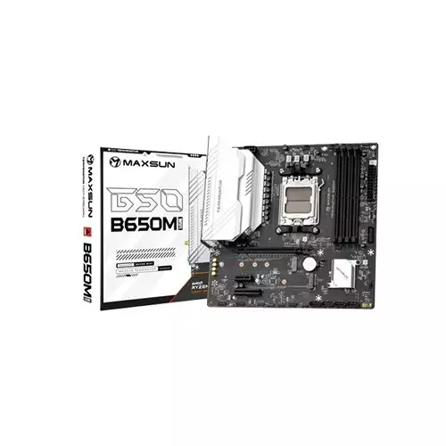 MAXSUN Terminator B650M WiFi6 Motherboard is a robust and future-ready AMD platform built for users who demand performance, stability, and next-gen features in a compact M-ATX form factor. Designed around the AMD B650 chipset, it supports AM5 socket processors including Ryzen 7000, 8000, and 9000 series, with a TDP of up to 170W, making it ideal for high-performance builds in gaming, content creation, or productivity. This board features 4 DDR5 DIMM slots, supporting up to dual-channel memory at speeds from 4800MHz to 5200MHz, with room for overclocking. It includes one HDMI port (4K@30Hz) and one DisplayPort (4K@60Hz), ensuring high-definition visual output for modern displays. Expansion is handled through a PCIe 4.0 x16 slot, a PCIe 4.0 x4 slot, and a PCIe 3.0 x1 slot, giving flexibility for powerful GPUs and additional cards. Storage capabilities are strong with one M.2 PCIe 4.0 slot (2242/2280/22110), ideal for NVMe SSDs, and four SATA 6Gb/s ports for HDDs or additional SSDs. On the connectivity side, the board is equipped with Wi-Fi 6, Realtek 2.5G LAN, and Bluetooth, providing fast and stable internet connections. Rear I/O includes USB 3.2 Gen1, USB 2.0, and a USB Type-C (10Gbps) port, while internal headers allow further USB expansion including a front USB-C 10Gbps. With Realtek ALC897 audio, rich I/O options, a solid power delivery system, and extensive internal connectivity, the MAXSUN Terminator B650M WiFi6 is a feature-packed, reliable choice for AMD-based builds. Now available at Tech Land BD with a 3-year warranty, it's a smart investment for serious PC builders.
