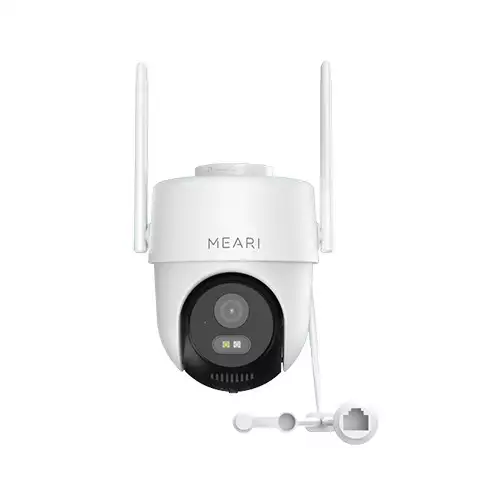 The Meari S2 Plus Outdoor PTZ Smart WiFi Camera offers powerful outdoor surveillance with crystal-clear 2K video resolution at 2560×1440 pixels. Equipped with pan (0°~355°) and tilt (0°~-90°) functionality, it allows for expansive coverage, making it ideal for driveways, entrances, or yards. This dual-band device supports both 2.4GHz and 5GHz WiFi, along with a built-in RJ45 Ethernet port, giving users flexible network setup options. Featuring advanced H.264 and H.265 compression, it ensures high-quality video with optimized bandwidth usage. The wide 95° diagonal field of view ensures comprehensive monitoring, while users can choose between event-triggered or 24/7 recording based on their security needs. It supports local TF card storage (up to 256GB) and cloud storage, providing versatile data management. With built-in free 6-second event cloud recording, you’ll never miss a moment. Designed to withstand outdoor elements, the S2 Plus delivers high-performance smart monitoring that’s easy to install and operate from your smartphone, making it a reliable choice for outdoor home or business security.