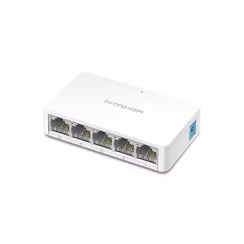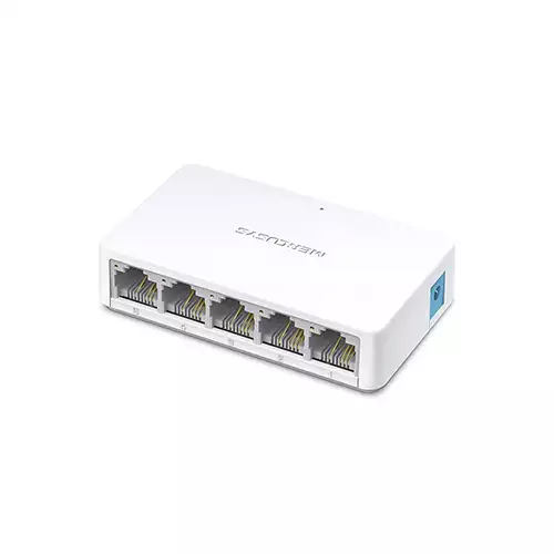 MERCUSYS MS105 5-Port 10/100Mbps Desktop Switch comes with Five 10/100Mbps auto-negotiation RJ45 ports with auto MDI/MDIX supported Easily wired network expansion Compact design for flexible arrangement Plug and play setup, no configuration required