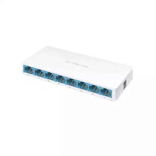 MERCUSYS MS108 8-Port 10/100Mbps Desktop Switch comes with Eight 10/100Mbps auto-negotiation RJ45 ports with auto MDI / MDIX supported Easily wired network expansion Compact design for flexible arrangement Plug and play setup, no configuration required.