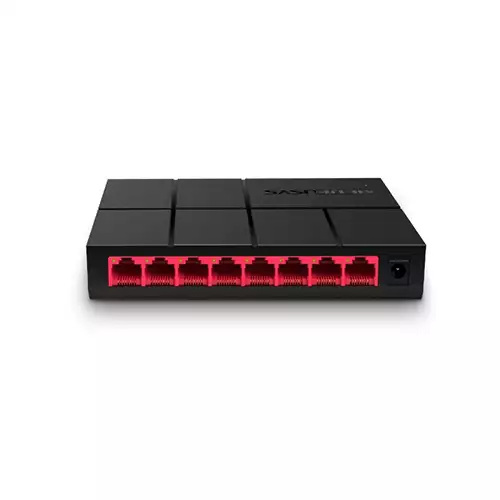 Mercusys MS108G V2 8-Port 10/100/1,000 Mbps Desktop Switch comes with Eight 10/100/1,000 Mbps auto-negotiation RJ45 ports with auto MDI / MDIX supported Easily wired network expansion Compact design for flexible arrangement Plug and play setup, no configuration required Green Ethernet technology saves power by up to 82%