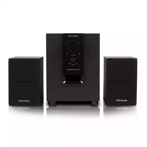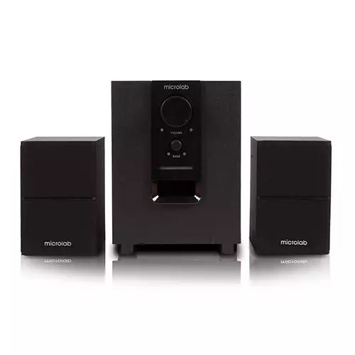 MICROLAB M106BT Powerful 2.1 system with Bluetooth Introduction.2.1 speaker featuring Bluetooth technology, freely streams your music with any Bluetooth-enabled device. Its equipped with an amplifier for large output power, which contributes to powerful acoustic performance. The bass reflex tunnel brings stunning bass sound effects. You could freely enjoy blockbuster movies and music without cumbersome Cables at home. Powerful 2.1 speakers with full-range radio spectrum. - Ideal for your home entertainment with a wireless connection. - Bluetooth wireless technology for free music streaming. - Built with an amplifier for perfect sound performance. - Bass reflex tunnel brings deeper bass and enhances vocal depth.