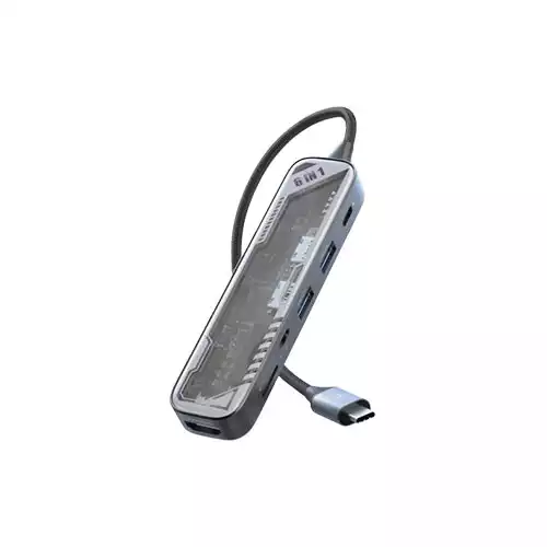 Micropack MDC-N6T 6-in-1 Multiport Type-C Hub is built to simplify modern connectivity needs, and the Micropack MDC-N6T 6-in-1 Multiport Type-C Hub delivers a practical solution for users who rely on USB-C devices for work, study, or entertainment. Designed with a USB 3.2 Gen 1 Type-C input, this compact hub expands a single port into multiple essential connections, making it ideal for laptops, tablets, and compatible smartphones. It features two high-speed USB-A ports that support up to 5Gbps data transfer and can charge peripherals with up to 900mAh output per port. The integrated HDMI output supports resolutions up to 4K at 60Hz, ensuring clear and smooth visuals for presentations, streaming, or extended displays. For power delivery, the USB-C PD port supports up to 100W, allowing you to charge your device while using other ports without interruption. The built-in card reader supports both SD and Micro SD cards with fast data transmission speeds of up to 5Gbps, making file transfers quick and convenient. Crafted with an aluminum alloy panel, the hub offers efficient heat dissipation while maintaining a scratch-resistant and stylish finish in a grey-black color combination. Its visible core board design adds a modern touch, while the compact dimensions and 150mm cable length make it easy to carry in a bag or pocket. With stable performance, strong build quality, and wide compatibility, this multiport hub is a reliable companion for users in Bangladesh who need flexibility and performance from a single USB-C connection. Backed by a 1-year warranty, it delivers confidence along with everyday usability.