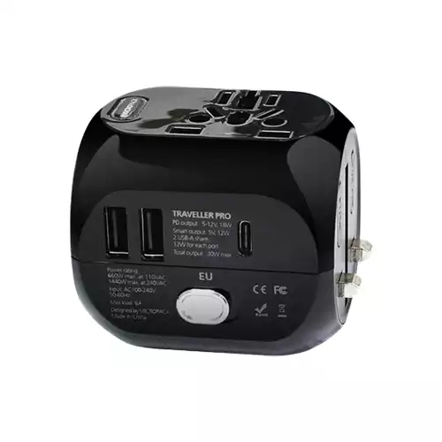 FAST CHARGING USB-PD 18W: USB-C port with USB Power Delivery protocol, fast charge all USB-C devices up to 18W, WORLDWIDE CHARGING: All in one, upgraded universal AC socket, use in over 150 countries. SMART IDENTIFICATION: Intelligently identifies each connected device's required current to optimise the fast charging process. FULL PROTECTION SYSTEM: Full protection with over current, over-voltage, over-temperature and short-circuit protection. CHILDREN SAFETY PROTECTOR: Anti-electric shock separator, and the children, safety protector is adopted for protecting the children from electric shock.