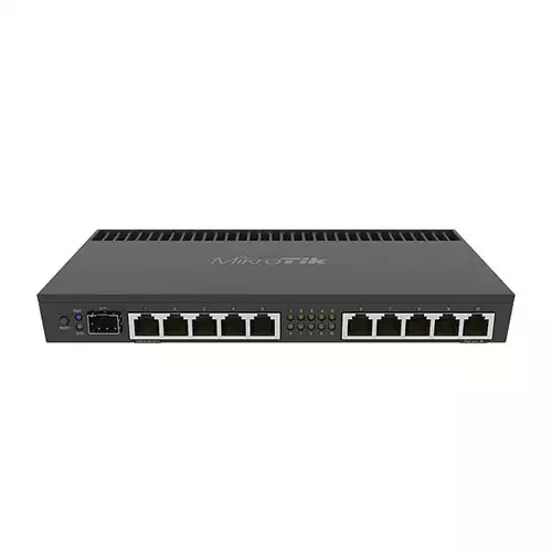 The Mikrotik RB4011iGS+RM 10xGigabit Ethernet Rackmount Router is amazingly powerful routers with ten Gigabit ports, SFP+ 10Gbps interface and IPsec hardware acceleration for a great price! The RB4011 uses a quad core Cortex A15 CPU, same as in our carrier grade RB1100AHx4 unit. The unit is equipped with 1GB of RAM, can provide PoE output on port #10 and comes with a compact and professional looking solid metal enclosure in matte black. RB4011iGS+RM (Ethernet model) includes two rackmount ears that will securely fasten the unit in a standard 1U rack space.. this Mikrotik RB4011iGS+RM 10xGigabit Ethernet Rackmount Router comes with 01 year warranty.
