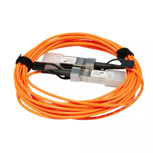 Mikrotik S+AO0005 SFP+ Active Optics Direct Attach Cable 5m SFP+ 10Gbps Active Optics direct attach cable. This is highly cost-effective way to connect two SFP/SFP+ devices for very short distances, within racks and across adjacent racks. It works with all our products with SFP/SFP+ ports, including new RB4011 series (RB4011 series are not compatible with our passive direct attach cables S+DA0001 and S+DA0003)