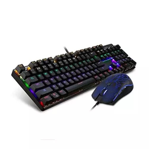 Game in style with the Motospeed CK666 NKRO RGB Mechanical Gaming Keyboard & Mouse Combo. This keyboard and mouse combination are designed with the gamer in mind, featuring different color LED light effects and a mouse with the ability to alter its pointer precision with four different DPI settings.