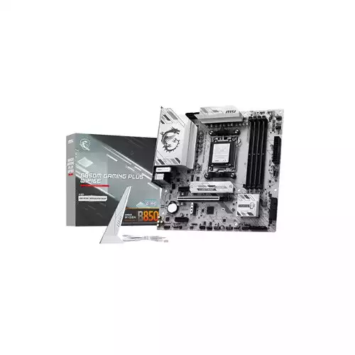MSI B850M GAMING PLUS WIFI6E mATX Motherboard, available at Tech Land BD in Bangladesh, is a gaming-oriented powerhouse built on the AMD B850 chipset, designed to support AMD Ryzen™ 9000, 8000, and 7000 Series Desktop Processors with the AM5 socket. This Micro-ATX board supports up to 256GB of DDR5 memory across four UDIMM slots, with overclocking speeds reaching 8200+ MT/s (1DPC 1R) and AMD EXPO™ support for optimized performance. It features a PCIe 4.0 x16 slot (with Steel Armor) for high-end graphics cards and two PCIe 3.0 x1 slots, catering to diverse expansion needs. Storage options include two M.2 slots—one supporting PCIe 5.0 x4 (128Gbps) for Ryzen 9000/7000 and another PCIe 4.0 x4—alongside four SATA 6G ports, with RAID 0, 1, and 10 support for SATA and RAID 0/1 for M.2 NVMe. The motherboard ensures robust connectivity with Wi-Fi 6E (up to 2.4Gbps, 6GHz support) and Bluetooth 5.3, paired with a Realtek 2.5G LAN for lag-free gaming. It offers versatile USB options, including USB 10Gbps Type-C and Type-A ports, and supports 4K 60Hz displays via HDMI 2.1 and DisplayPort 1.4 (on CPUs with integrated graphics). Audio is powered by Realtek ALC897 for 7.1-channel HD sound. Cooling is enhanced with extended heatsinks, 7W/mK MOSFET thermal pads, and M.2 Shield Frozr, complemented by multiple fan headers. The board’s DIY-friendly features, like EZ M.2 Clip II and EZ Antenna, simplify assembly. With ARGB lighting and MSI Mystic Light compatibility, it adds aesthetic flair. Purchase the MSI B850M GAMING PLUS WIFI6E from Tech Land BD for a high-performance, future-proof gaming platform in Bangladesh.Which CPUs are compatible?