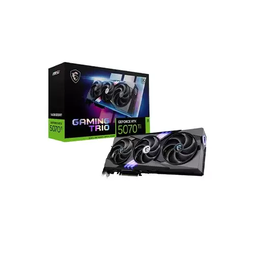 Elevate your gaming experience with the MSI GeForce RTX 5070 Ti 16G GAMING TRIO OC, now available at Tech Land BD. Built by MSI, a global leader in high-performance gaming hardware, this graphics card is powered by the revolutionary NVIDIA® GeForce RTX™ 5070 Ti GPU, delivering blistering speeds with a boost clock of 2572 MHz (up to 2580 MHz in MSI Center) and 8960 CUDA® Cores for seamless gaming and ultra-fast content creation. Featuring 16GB of next-gen GDDR7 VRAM on a 256-bit bus, it effortlessly handles 8K gaming, supported by HDMI™ 2.1b (enabling 4K 480Hz or 8K 120Hz with DSC) and DisplayPort 2.1b outputs. MSI’s advanced TRIO FROZR cooling system ensures optimal thermal performance, while NVIDIA G-SYNC® guarantees tear-free, ultra-smooth gameplay. With a 300W power requirement, it includes a 16-pin connector and recommends a 750W PSU for peak efficiency. Designed for enthusiasts, it supports DirectX 12 Ultimate and OpenGL 4.6, making it perfect for both gaming and professional workloads. Measuring 338 x 140 x 50 mm, it fits most premium PC builds while maintaining a sleek, aggressive design. Trusted by gamers worldwide, MSI combines innovation and durability in this powerhouse GPU. Upgrade to the MSI GeForce RTX 5070 Ti GAMING TRIO OC today—available only at Tech Land BD—and dominate every game with unmatched performance!