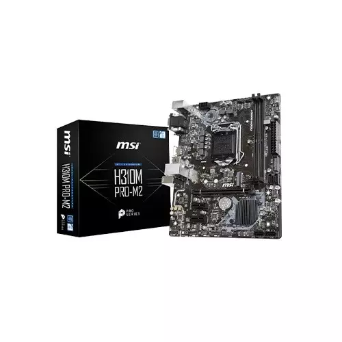 MSI H310M Pro-M2 is a high-performance motherboard designed for 9th and 8th Gen Intel Core, Pentium Gold, and Celeron processors. Built with the Intel H310 chipset, it provides a stable platform for everyday computing and gaming. The motherboard supports dual-channel DDR4 memory up to 32GB, ensuring smooth multitasking. For graphics output, it features VGA, DVI-D, and HDMI ports, with 4K support via HDMI. Expansion options include one PCIe 3.0 x16 slot and two PCIe 2.0 x1 slots, offering flexibility for additional components. Storage is enhanced with four SATA 6Gb/s ports and one M.2 slot, which supports PCIe 2.0 x4 and SATA SSDs. Connectivity options include four USB 3.1 Gen1 ports and six USB 2.0 ports, ensuring compatibility with modern peripherals. The Intel I219-V Gigabit LAN provides stable networking, while Realtek ALC887 7.1-Channel HD Audio enhances sound quality. This compact and efficient motherboard is ideal for budget gaming setups, office PCs, and home entertainment systems. Get the MSI H310M Pro-M2 from Tech Land BD and enjoy a 3-year warranty for peace of mind!