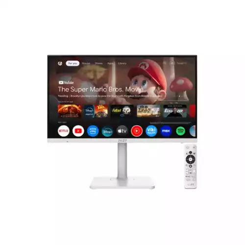 The MSI Modern MD272UPSW is a sleek and powerful 27-inch 4K UHD Smart Monitor designed for professionals, creators, and home users who value productivity and elegant design. Featuring a 3840 x 2160 (UHD) resolution on an IPS LED panel, it delivers crystal-clear visuals, sharp text, and lifelike color reproduction. With 300 cd/m² brightness and 1.07 billion colors (10-bit, 8-bit + FRC), this monitor ensures accurate and vibrant color output, perfect for graphic design, content creation, and video editing. The 94% Adobe RGB, 98% DCI-P3, and 127% sRGB (CIE1976) color gamut coverage provides professional-grade color accuracy, making every image vivid and true to life. Equipped with a 4ms (GtG) response time and 60Hz refresh rate, it delivers smooth performance for daily work, streaming, and light entertainment. The HDR Ready capability enhances contrast and brightness, offering a more immersive viewing experience whether you’re watching HDR movies or editing high-dynamic-range content. The MSI Modern MD272UPSW also stands out as a Smart Monitor with built-in Wi-Fi 5, Bluetooth 5.0, and Ethernet LAN support, allowing seamless connectivity and smart functionality for streaming, cloud access, and remote work. The Dolby Audio 3W x2 speakers deliver clear and rich sound quality, reducing the need for external speakers. The monitor’s ergonomic stand supports tilt (-5°~20°), swivel (-30°~30°), pivot (-90°~90°), and height adjustment (up to 130mm), providing exceptional flexibility and comfort for any workspace. Its anti-glare display, low blue light, and flicker-free technology ensure long hours of use without eye fatigue. Connectivity options include 1x DisplayPort 1.4a (HBR3), 2x USB 2.0 Type-A, 1x Type-C (DP alt.) with 65W Power Delivery, and a headphone-out port, ensuring compatibility with laptops, PCs, and external devices. The USB Type-C connectivity allows single-cable convenience — delivering power, data, and video through one connection — ideal for modern, clutter-free workstations. The monitor’s Adaptive-Sync and G-Sync support also make it suitable for casual gaming, ensuring tear-free, smooth visuals. Its white minimalist design with VESA wall mount (100x100mm) support fits perfectly into modern office or home setups. Powered by an external adaptor (19V 5.79A), the MD272UPSW combines elegance, intelligence, and high performance in one stylish package.