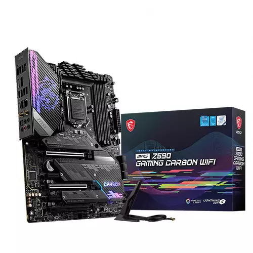 Accelerate gaming performance with the MPG Z590 CARBON WiFi LGA 1200 ATX motherboard from MSI. MSI MPG Z590 CARBON WiFi Motherboard contains the Z590 chipset and is compatible with Intel CPUs via the LGA 1200 socket. MSI MPG Z590 CARBON WiFi Motherboard Supports the 11th and 10th generation Intel Core/Pentium Celeron processors for LGA 1200 sockets. Supports DDR4 memory up to 5333 (OC) MHz. Lightning gaming speeds: PCIe 4.0, Lightning Gen 4 x4 M.2, USB 3.2 Gen 2x2 improved performance design: 16 + 1 + 1 Duet rail power supply network, two 8-pin CPU sockets, Core Boost, DDR4 Boost advanced cooling solution extended heat pipe radiator, 7 W / um MOSFET thermocouple, optional heating throttle valve 3x M.2 Shield Frozr is developed for high-performance systems and the perfect "Mystical Light: 16" game. One key can control 8 million colors/29 effects. MYSTIC LIGHT EXTENSION supports RGB and rainbow LED strips. LAN 5G with LAN Manager and Intel Wi-Fi 6E solution: an extended network solution for professional and multimedia purposes. Fast network connection AUDIO BOOST 5 Brings studio-level sound quality to your ears, allowing you to immerse yourself in the ultimate gaming experience. High-quality PCB: 6-layer PCB made of 2 ounces of copper and server materials. Easier to install audio is processed by the Realtek ALC4080, The MSI MPG Z590 CARBON WiFi LGA 1200 ATX motherboard is compatible with Windows 10 64-bit operating systems.