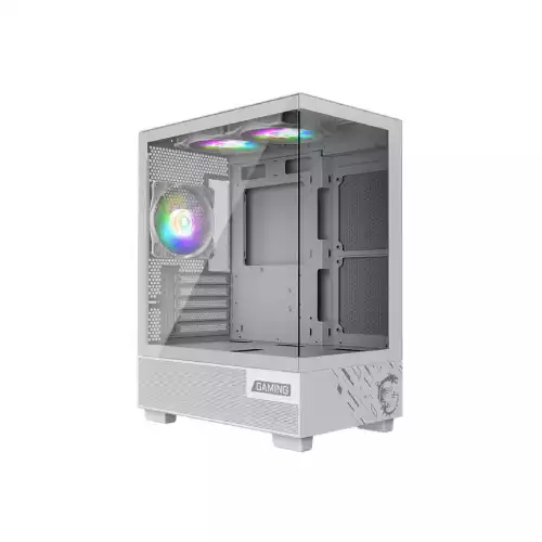 The MSI PAG PANO M110A Mid Tower Micro-ATX Gaming PC Case (White) is a stylish, compact, and high-performance chassis designed for gamers and PC builders who want both efficiency and elegance in one package. This mid-tower case supports Micro-ATX and Mini-ITX motherboards, making it an excellent choice for small to medium builds while still offering ample internal space for powerful components. With a sleek white finish and tempered glass side panel, it allows you to showcase your hardware and stunning auto RGB fans. It comes with three pre-installed fans—two 120mm auto RGB fans on the top and one 120mm auto RGB fan at the rear—ensuring optimized airflow and an eye-catching lighting effect. The cooling system supports multiple fan and radiator configurations, including rear: 1 x 120mm, top: 2 x 120/140mm, side: 2 x 120mm, bottom: 2 x 120mm, and radiators up to 240mm. With a maximum CPU cooler height of 160mm and GPU length of up to 330mm, this case provides excellent compatibility with modern gaming hardware. Storage options are also versatile, offering 1 x 2.5” SSD bay and 2 x 3.5” HDD bays. The case comes with 5 expansion slots, ensuring sufficient space for GPUs and add-on cards. For convenience, the front I/O panel includes 1 x USB 5Gbps (Type-A), 1 x USB (Type-A), 1 x audio-out/mic-in combo jack, reset button, and power button, giving easy access to essential connections. The PSU compartment supports ATX power supplies up to 160mm, ensuring compatibility with a wide range of units. The smart cable management system ensures neat and clutter-free builds, while the compact dimensions (14.52 x 8.26 x 17.63 inches) make it a great fit for desks or smaller setups without compromising on performance. With its durable build quality, attractive RGB lighting, and efficient airflow, the MSI PAG PANO M110A Mid Tower Micro-ATX Case is a perfect balance of style and practicality, making it an ideal choice for gamers who want a modern, compact, and efficient gaming rig.