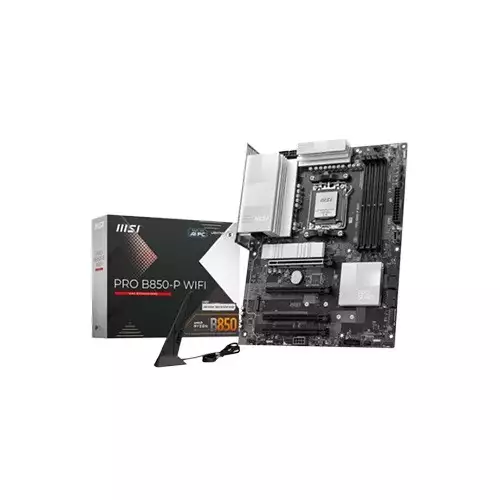 MSI PRO B850-P WIFI AM5 DDR5 ATX Motherboard, a robust and future-ready foundation for any high-end AMD build. Designed to support the latest AMD Ryzen 9000, 8000, and 7000 Series Desktop Processors, this motherboard offers incredible memory speed support with DDR5 up to 8200+ MHz (OC), allowing users to harness the full potential of AMD EXPO and overclocking technologies. With a total capacity of 256GB across 4 DIMM slots, the board is perfect for demanding creators, gamers, and multitaskers. Equipped with the AMD B850 chipset, this ATX board features premium connectivity options including PCIe 5.0 x16, ideal for next-gen GPUs, and additional PCIe 3.0/4.0 slots for expansion cards. The built-in Wi-Fi 7 and 5G LAN provide ultra-fast internet speeds, low latency, and reliable connections for both online gaming and professional workloads. In terms of audio, the Realtek ALC897 7.1-Channel HD Audio delivers immersive sound quality. You’ll also find HDMI 2.1 support for 4K at 60Hz, and a rich array of USB ports, including USB 10Gbps Type-A and Type-C, ensuring maximum flexibility for peripherals and fast data transfers. This motherboard offers a well-rounded feature set with ARGB support, smart fan headers, enhanced power delivery, and a durable build—all backed by a 3-year warranty. Whether you're building a workstation or a gaming rig, the MSI PRO B850-P is engineered for reliability and speed.