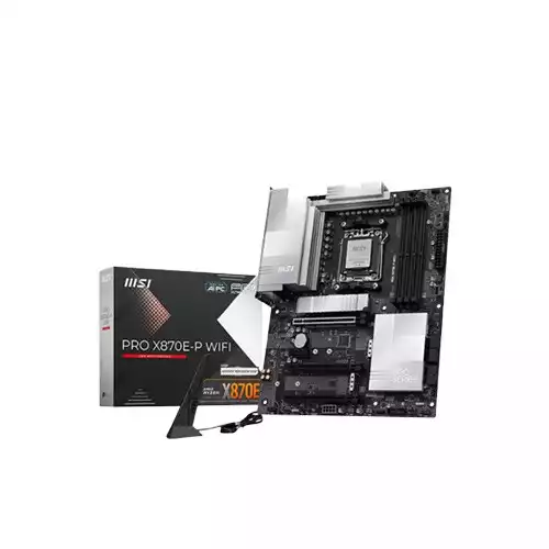 MSI PRO X870E-P WIFI AMD DDR5 ATX Motherboard is a high-end, feature-packed motherboard designed for enthusiasts and professional PC builders, now available in Bangladesh at Tech Land BD at the best price. Built on the AMD X870E chipset with an AM5 socket, it supports the latest AMD Ryzen™ 9000, 8000, and 7000 Series desktop processors, delivering exceptional computing performance for gaming, content creation, and intensive workloads. Featuring 4x DDR5 UDIMM slots with a maximum capacity of 256GB, it supports memory speeds up to 8200+ MT/s (OC) and offers advanced overclocking features, AMD EXPO™, and dual-channel support for ultra-fast, responsive performance. Expansion options include three PCIe x16 slots with PCIe 5.0 support and one PCIe x1 slot, allowing for high-end graphics cards and multiple add-ons. Storage is abundant with 3x M.2 slots (PCIe 5.0/4.0) and 4x SATA 6G ports, along with RAID 0, 1, 5, and 10 support for enhanced speed and data protection. Connectivity is future-ready with Realtek® 8126VB 5G LAN, Wi-Fi 7, and Bluetooth® 5.4, ensuring ultra-fast wired and wireless networking. The rear I/O panel features multiple high-speed USB ports, including USB 40Gbps Type-C, USB 20Gbps Type-C, USB 10Gbps Type-A, and USB 5Gbps Type-A, alongside HDMI™ 2.1 and USB4® Type-C with DisplayPort 1.4 support for stunning visuals. Enhanced with Realtek® ALC897 7.1-channel HD audio, advanced cooling headers, RGB support, and EZ Debug LED, the MSI PRO X870E-P WIFI combines reliability, high performance, and modern features in a spacious ATX form factor (243.84mm x 304.8mm), making it an ideal motherboard for users in Bangladesh seeking premium PC building solutions from Tech Land BD.Which processors are compatible?