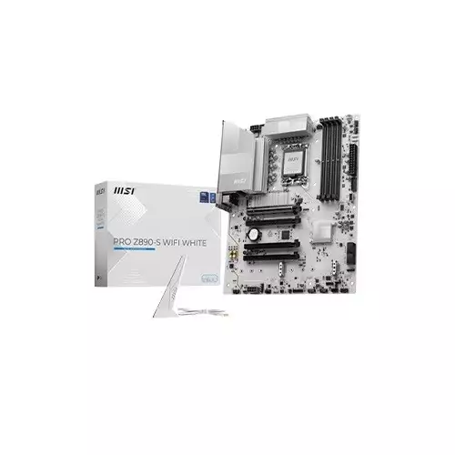 MSi PRO Z890-S WIFI DDR5 INTEL Z890 ATX White Motherboard offers a blend of superior performance and aesthetics for professional and gaming setups. Designed to support Intel Core Ultra processors, this ATX motherboard boasts cutting-edge features, high-speed connectivity, and a sleek white finish that elevates the appeal of any build.