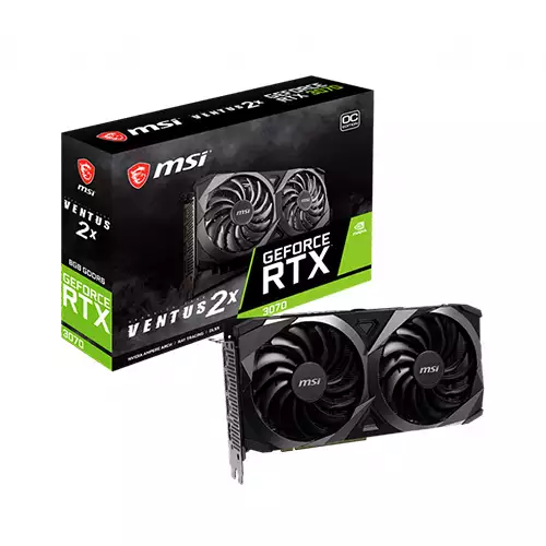 MSI RTX 3070 VENTUS 2X OC Based on the Ampere architecture and designed to handle the graphical demands of gaming at high frame rates, the MSI RTX 3070 VENTUS 2X OC 8GB Graphics Card brings the facility of real-time ray tracing to your games. In addition, the MSI RTX 3070 VENTUS 2X OC features 8GB of GDDR6 VRAM and a 256-bit memory interface. MSI RTX 3070 VENTUS 2X OC offering improved performance and power efficiency.