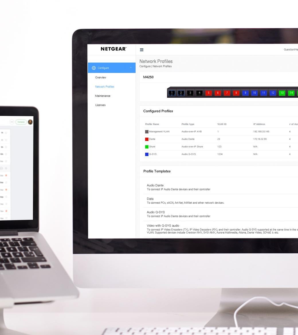 Quickly assign profiles to ports for Dante, AES67, and AVB audio configurations. AVB Requires a separate license