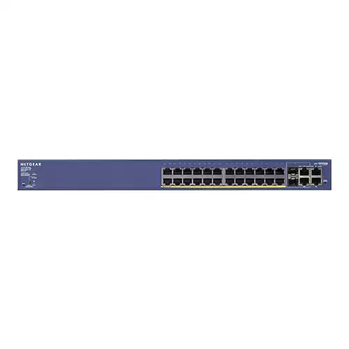 24 Fast Ethernet 10/100Mbps ports and 4 Gigabit ports.24 PoE ports with 192W total power budget.2 x 1G SFP ports (both are shared). Management software with easy-to-use GUI interface offers refined control for secure setup, access, and SNMP (NMS 300) management.Supports desktop or rackmount placement, and includes all the necessary mounting hardware in the box.Reduces fan noise to protect your home office or business environment.Covered by an industry-best Lifetime Limited Hardware Warranty, Next Business Day Replacement and 24/7 chat with a NETGEAR expert Designed to optimize power usage lowering its cost to operate. Most models are compliant with IEEE802.3az Energy Efficient Ethernet mode. Every NETGEAR Network switch is rigorously tested for reliability, quality, and performance.